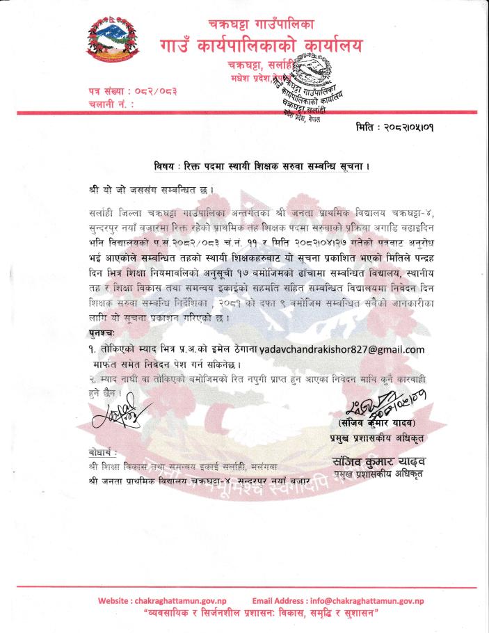 रिक्त पलमा स्थायी शिक्षक सरुवा सम्बन्धी सूचना