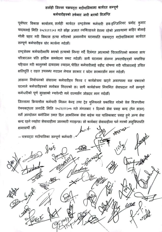 चक्रघट्टा गाउँपालिकाबाट जारी भएको विज्ञप्ति