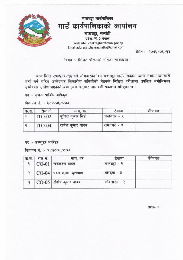 लिखित परीक्षाको नतिजा सम्बन्धमा