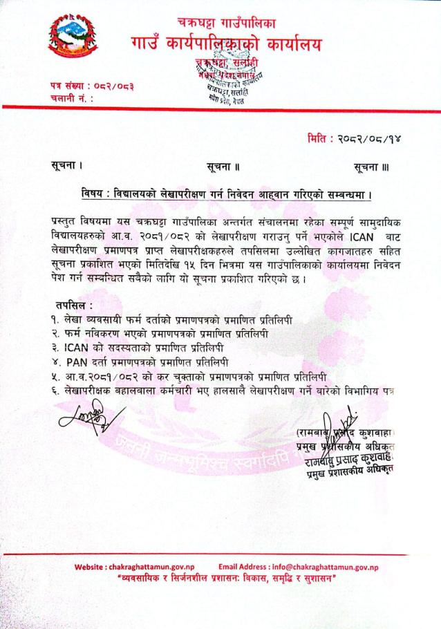 » विद्यालयको लेखापरीक्षण गर्न निवेदन आहवान गरिएको सम्बन्धमा ।