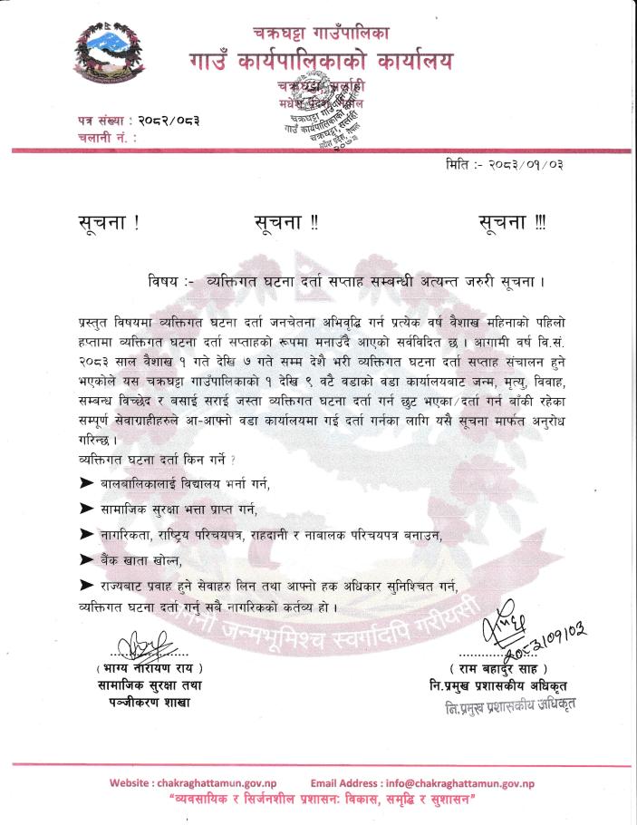 व्यक्तीगत घटना दर्ता सप्ताह सम्बन्धी अत्यन्त परुरी सूचना