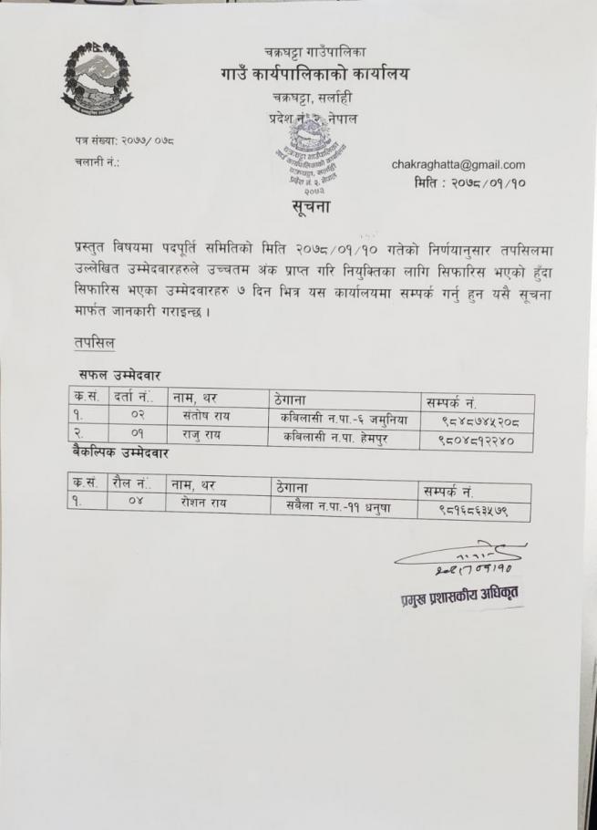 अन्तिम नतिजा प्रकाशन सम्बन्धी सूचना